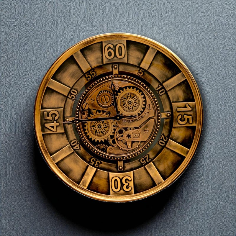 numerals provide perfect contrast to the complex machinery, ensuring legibility